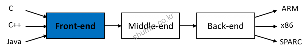구조는 크게 front-end, middle-end, back-end로 나뉜다.