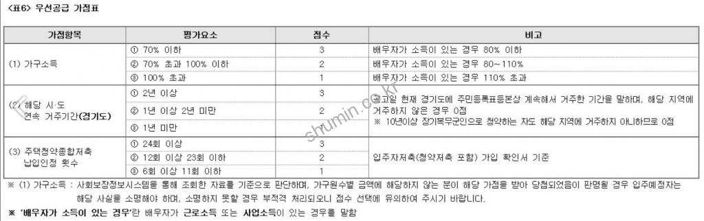 우선공급은 소득 관련해서 가점표가 존재한다.